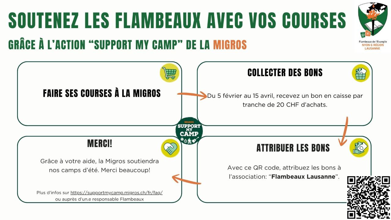 Les Flambeaux participent! Notre groupe se réunit avec les Flambeaux Lausanne pour la récolte des bons (Reçus avec vos courses par tranche de CHF20)